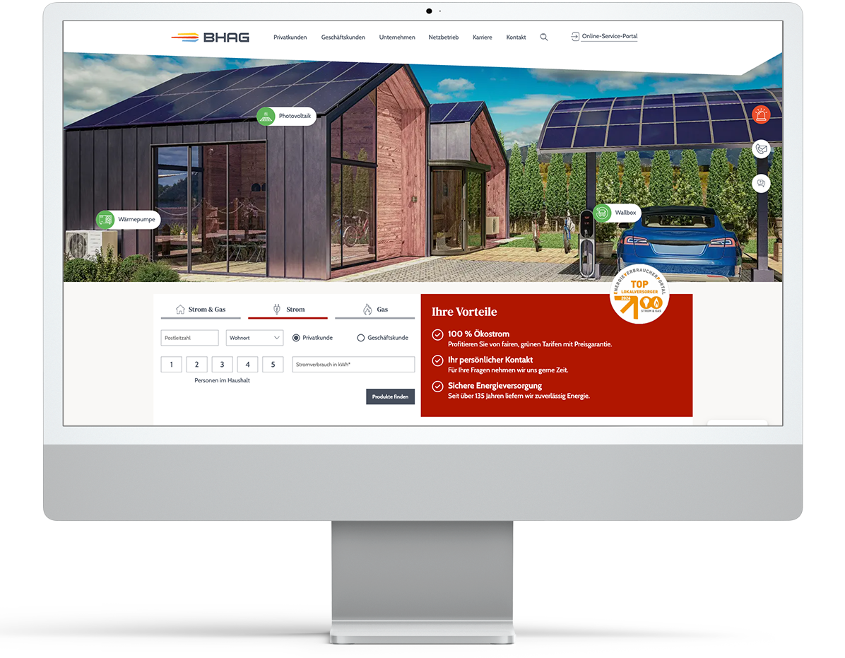 Die Bad Honnef AG (BHAG) ist ein regionaler Energiedienstleister, der Privat- und Geschäftskunden mit Strom, Gas und Wasser versorgt. Im Zuge der digitalen Transformation wurde die gesamte Web-Präsenz modernisiert, um komplexe Prozesse für Nutzer und Redakteure zu vereinfachen.